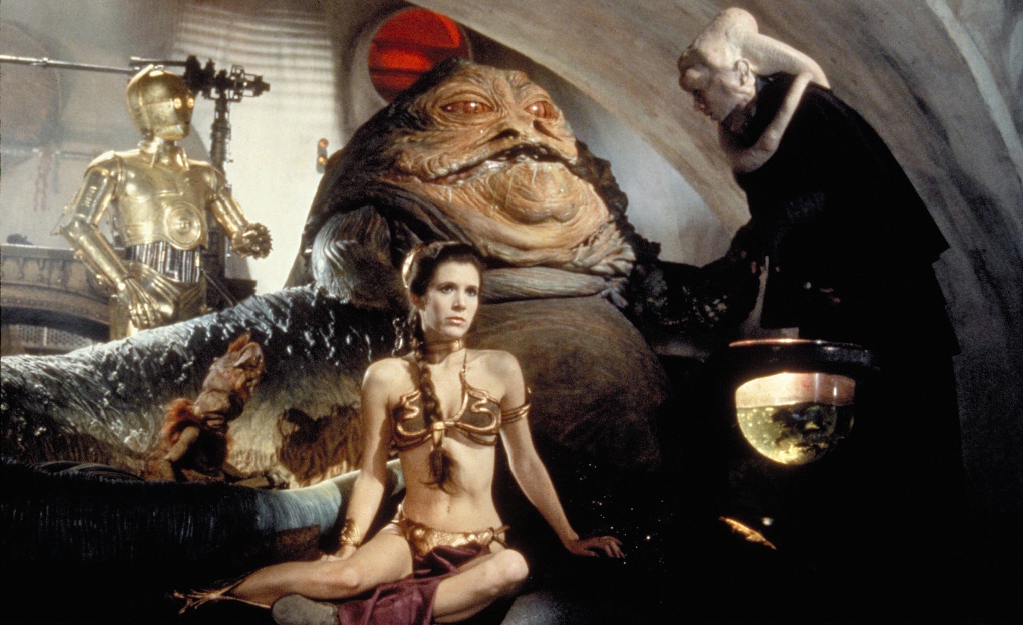 First appearing in Return of the Jedi in 1983, Jabba's Palace was the setting for the film's opening. Princess Leia, disguised as the bounty hunter Boushh, attempts to infiltrate and free Han Solo from the slab of carbonite he's imprisoned in.